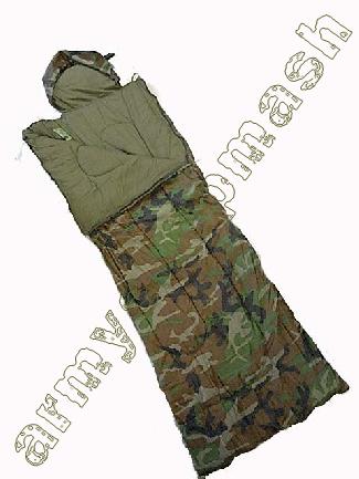 Spacák typu US.PILOT v Americké kamufláži Woodland.Materiál 100% Polyester,duté vlákno jako isolační vrstva,Podešev bavlna.Velikost 185x75cm v rozloženém stevu a 39x24x29 cm ve stavu složeném.Váha 1,700g.